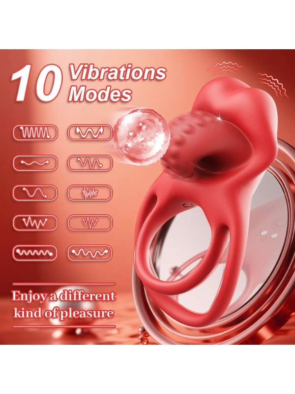 Censan Kırmızı Dudak Dil Şeklinde Şarjlı Titreşimli Penis Halkası